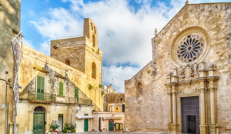 Ebenso sehenswert sind das Castel del Monte die einzigartige Krone Apuliens, die labyrinthischen Gassen der weißen Stadt Ostuni und die malerischen Orte wie Otranto, Santa Maria die Leuca und Galantina, ganz im Süden, die besonders für die zahlreichen Buchten und Grotten aber auch bei Kunstliebhabern für seine außergewöhnlichen Fresken und Mosaiken bekannt sind.