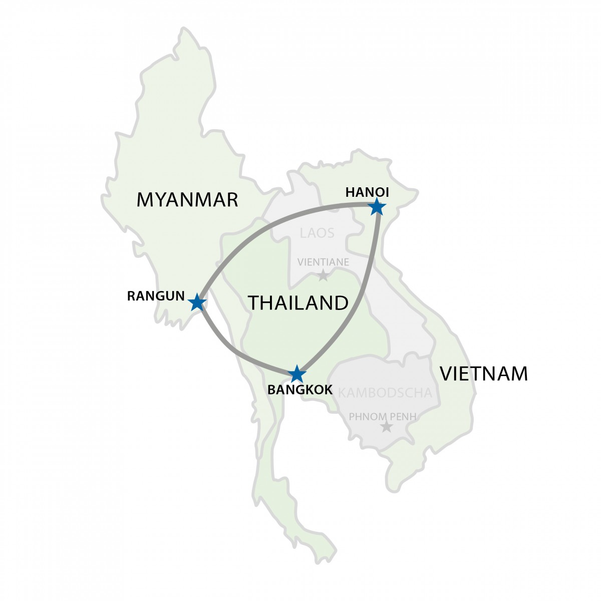 Von der Halong Bay im Norden Vietnams, über die wunderschönen Traumstrände Thailands, zum „Goldenen Land“ Myanmar mit seinen kulturellen Schätzen.